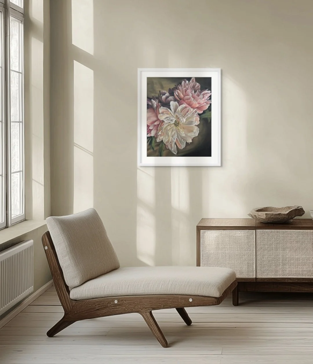 Transformation captures the delicate moment between holding on and letting go within this peony bunch. Created in soft pastel, the original artwork reveals subtle shifts of colour and texture, with soft forms dissolving into light.